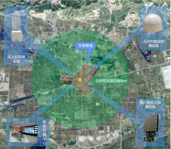 本方案针对国防军工行业的特点、相关项目的建设意见和国防重点区域无人机防控总体工作要求,构建反无人机立体安防系统,通过建立低空空域管控一体化平台,实现重点区域的低空小型飞行器的探测、跟踪、拒止、显控以及防控系统内部的互联互通,满足多点布控、多站联网模式下的低空小型飞行器的感知、识别、处置、通报需求。最后搭建形成国防行业无人机管控平台。